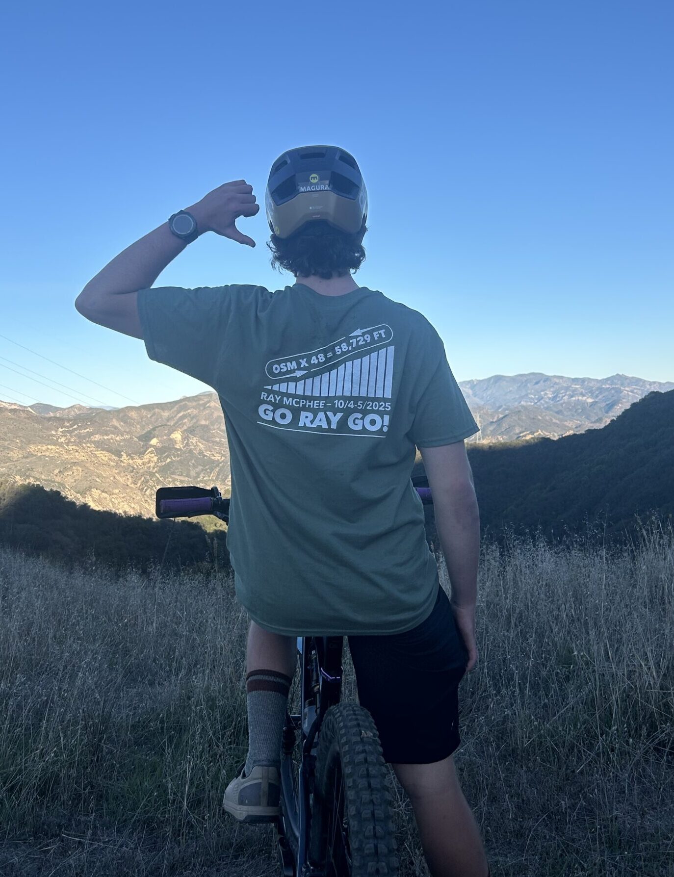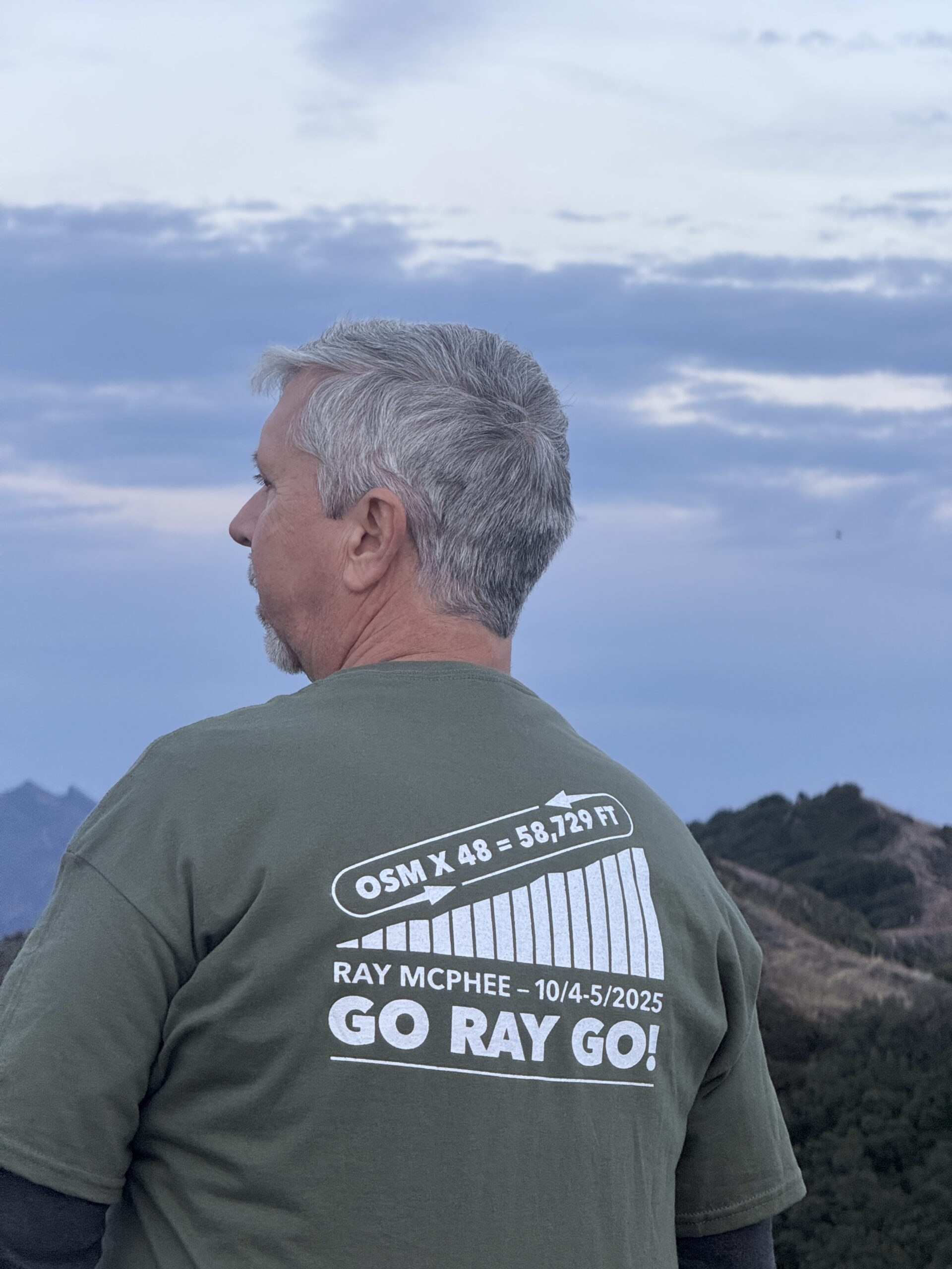 In honor of Ray McPhee’s impressive feat, a commemorative design to celebrate one heck of an accomplishment that inspires us all. Military Green with white. Also available as a hoody.